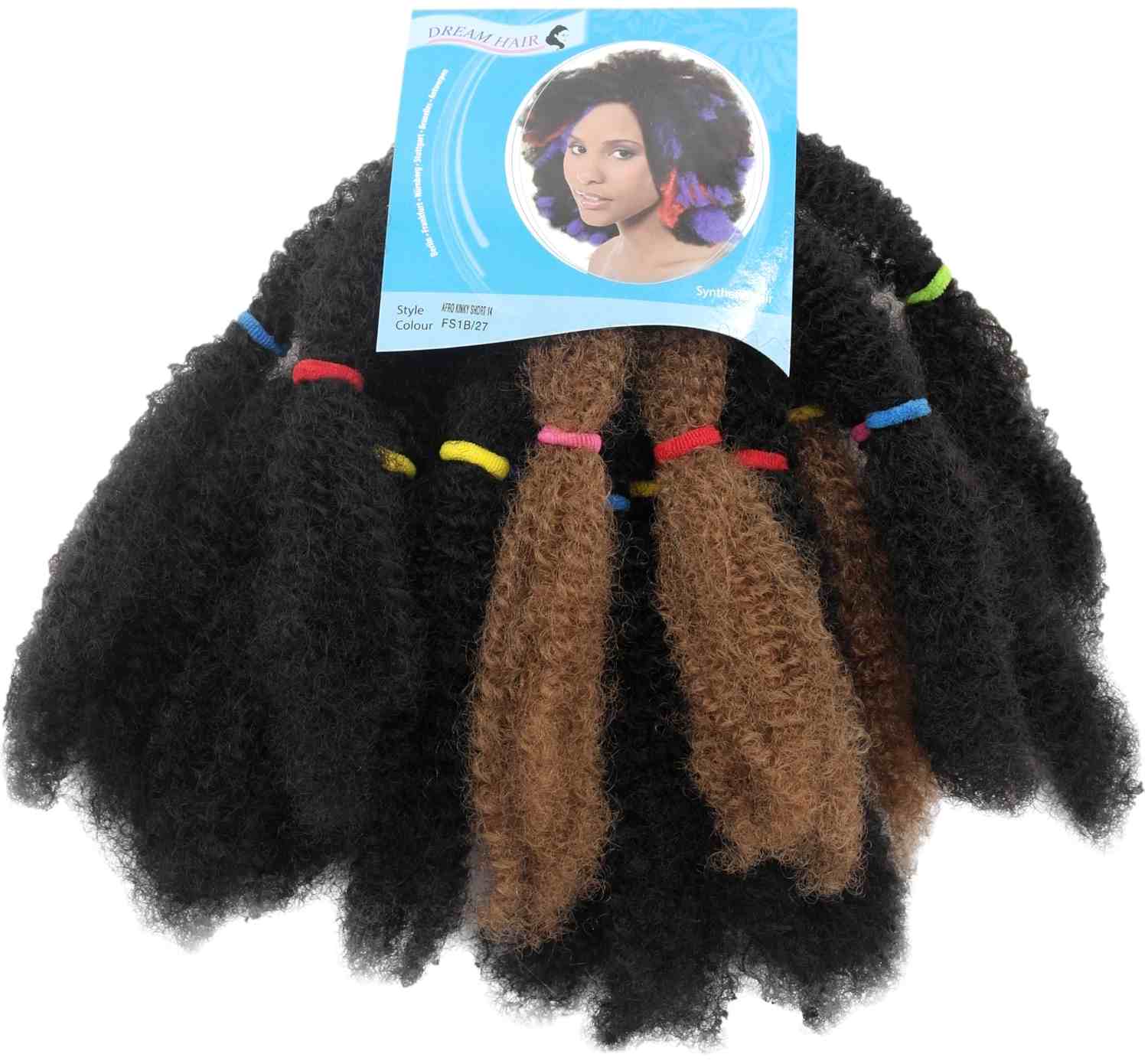 Dream Hair Afro Kinky Short 14 Synthetic Hair is 100% synthetic curly hair that is perfect for braids, dreads and similar hairstyles.